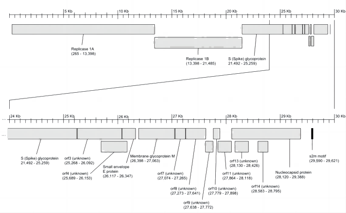 Severe acute respiratory syndrome (SARS)于2003年二月在亞洲第一次被報道,繼而傳播到全球十幾個(gè)國家,SARS屬于一種冠狀病毒,是一類(lèi)具有囊膜、基因組為線(xiàn)性單股正鏈的RNA病毒,對應的結構示意圖如下: