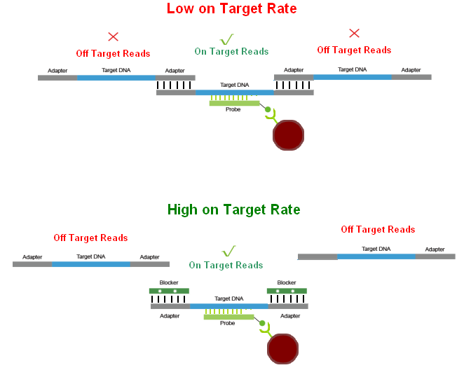 Universal Blocker for Illumina是針對Illumina 平臺普通DNA文庫開(kāi)發(fā)的適用于液相雜交捕獲通用型接頭封阻序列,可有效減少雜交過(guò)程中因接頭之間退火而造成的不同文庫分子之間形成的串聯(lián)結構,從而降低非特異性雜交。 適用于Illumina Truseq測序平臺的液相雜交捕獲通用封阻斷序列。 適用于6 - 10 bp Index Barcode。 適用于含UMI序列的接頭文庫。 顯著(zhù)降低接頭之間的非特異性結合,提高中靶率和富集程度。 在相同測序數據量情況下,顯著(zhù)提升有效測序深度。