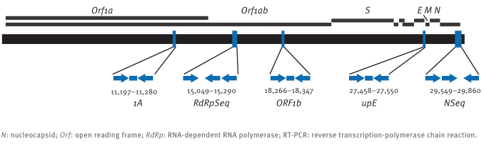 根據CDCWHO的介紹,針對MERS的核酸診斷一般是針對RdRP (RNA-dependent RNA polymerase)、Gene N和Gene upE/E, Gene S更多用于對應藥物和疫苗的開(kāi)發(fā)。NCBI收錄序列為NC_019843.3,全長(cháng)30119bp,基因編碼4個(gè)結構蛋白:S,M,NE。