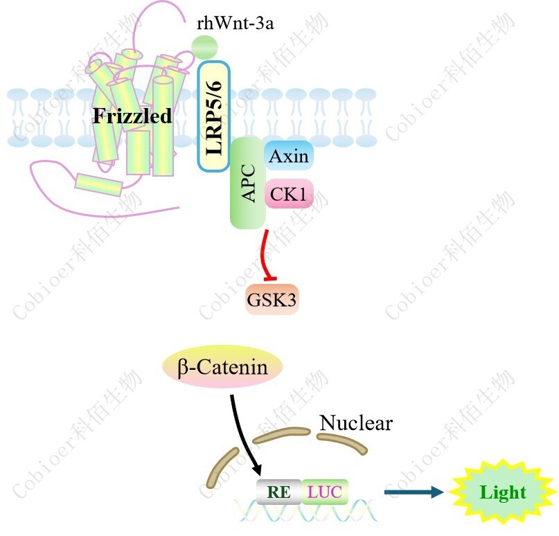 Wnt Effector Reporter Cell 報告基因藥靶模型很好的模擬了體內 WNT 的信號轉導過(guò)程,原理見(jiàn)下圖所示。