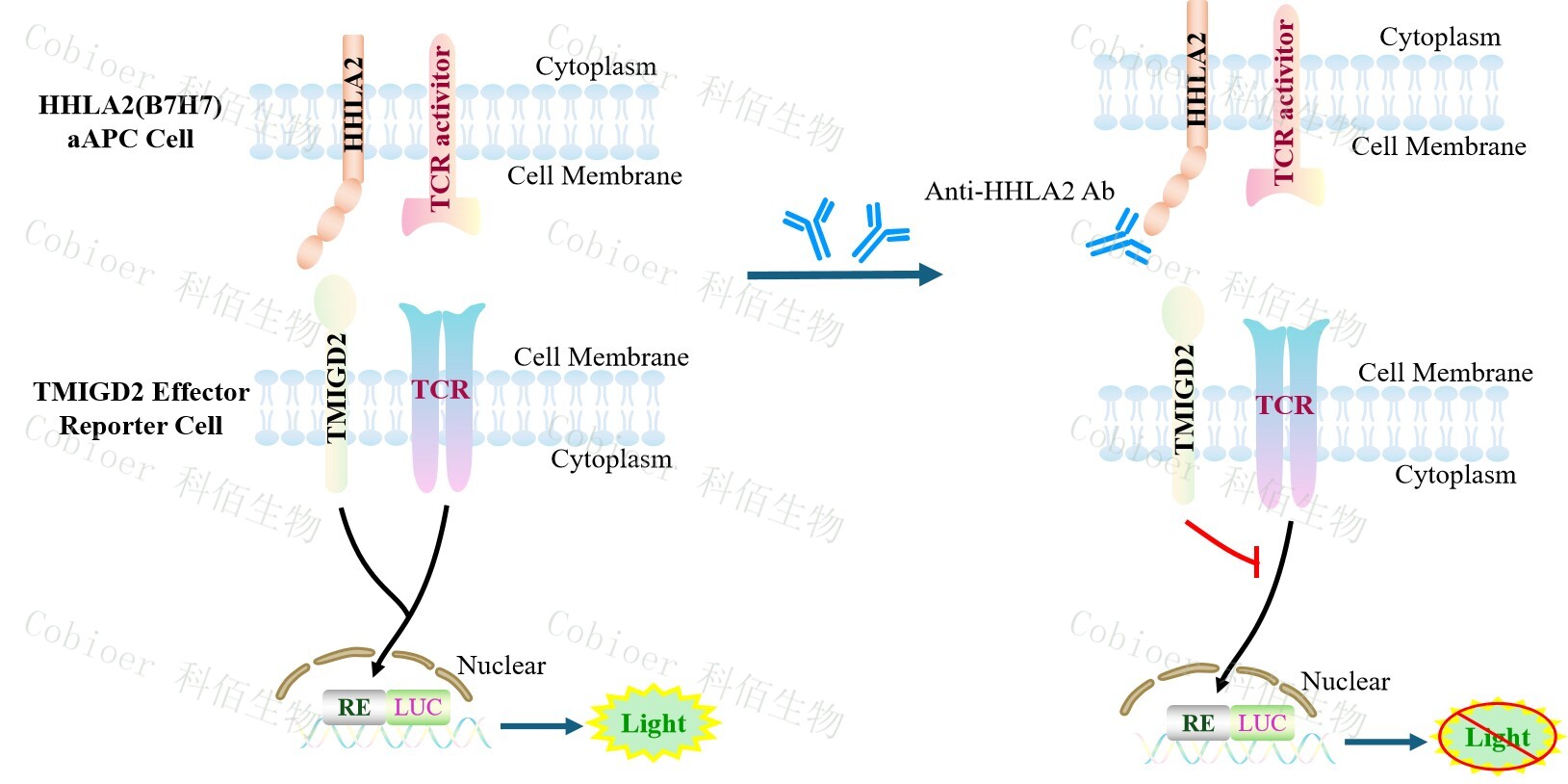 TMIGD2 Effector Reporter Cell 報告基因藥靶模型很好的模擬了體內 TMIGD2 的信號轉 導過(guò)程,原理見(jiàn)下圖所示。![]() Figure 1. TMIGD2 Effector Reporter Cell 模型原理圖 |
