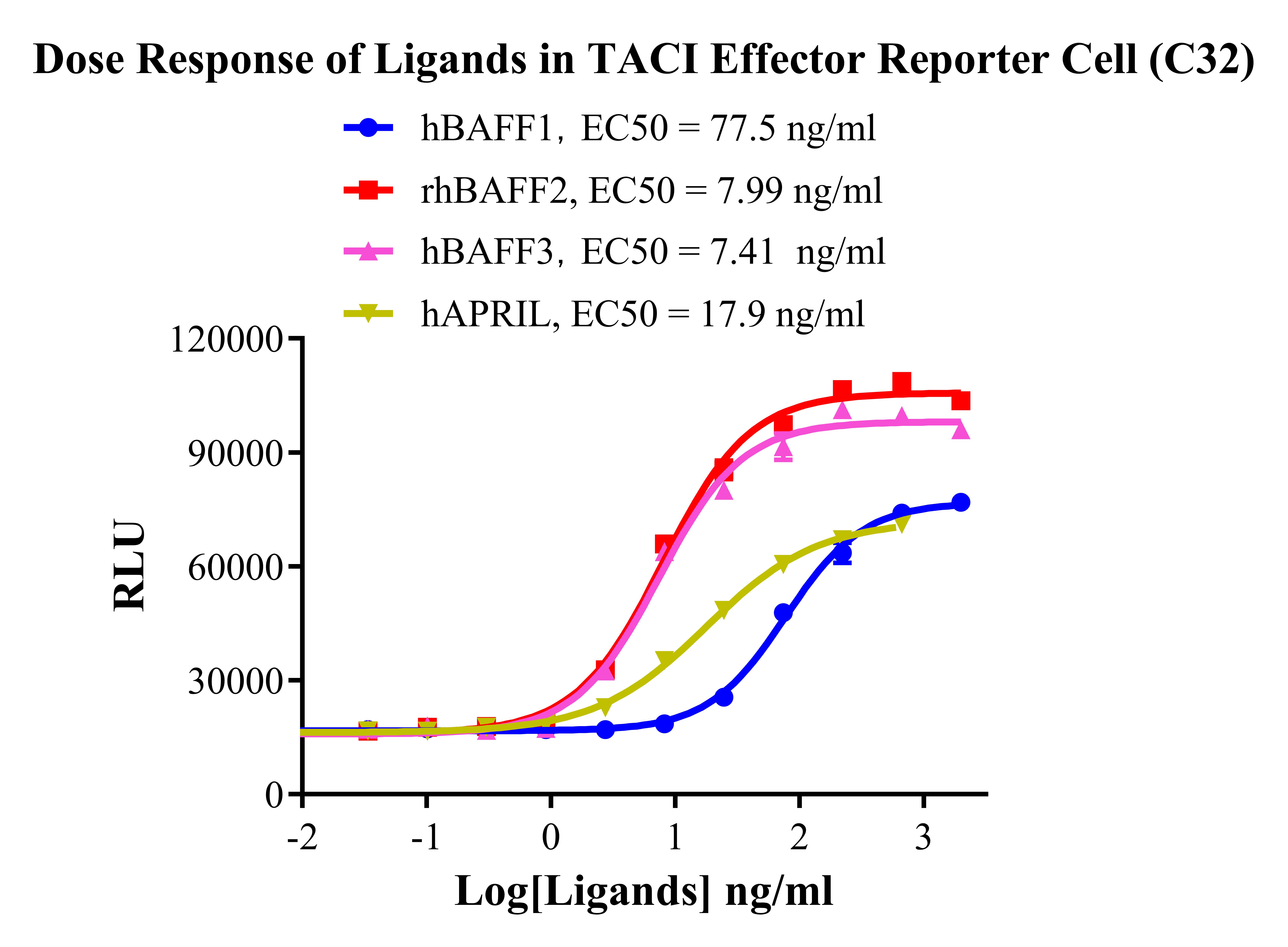 Figure 2. Dose response of Ligands in TACI Effector Reporter Cell(C32). |