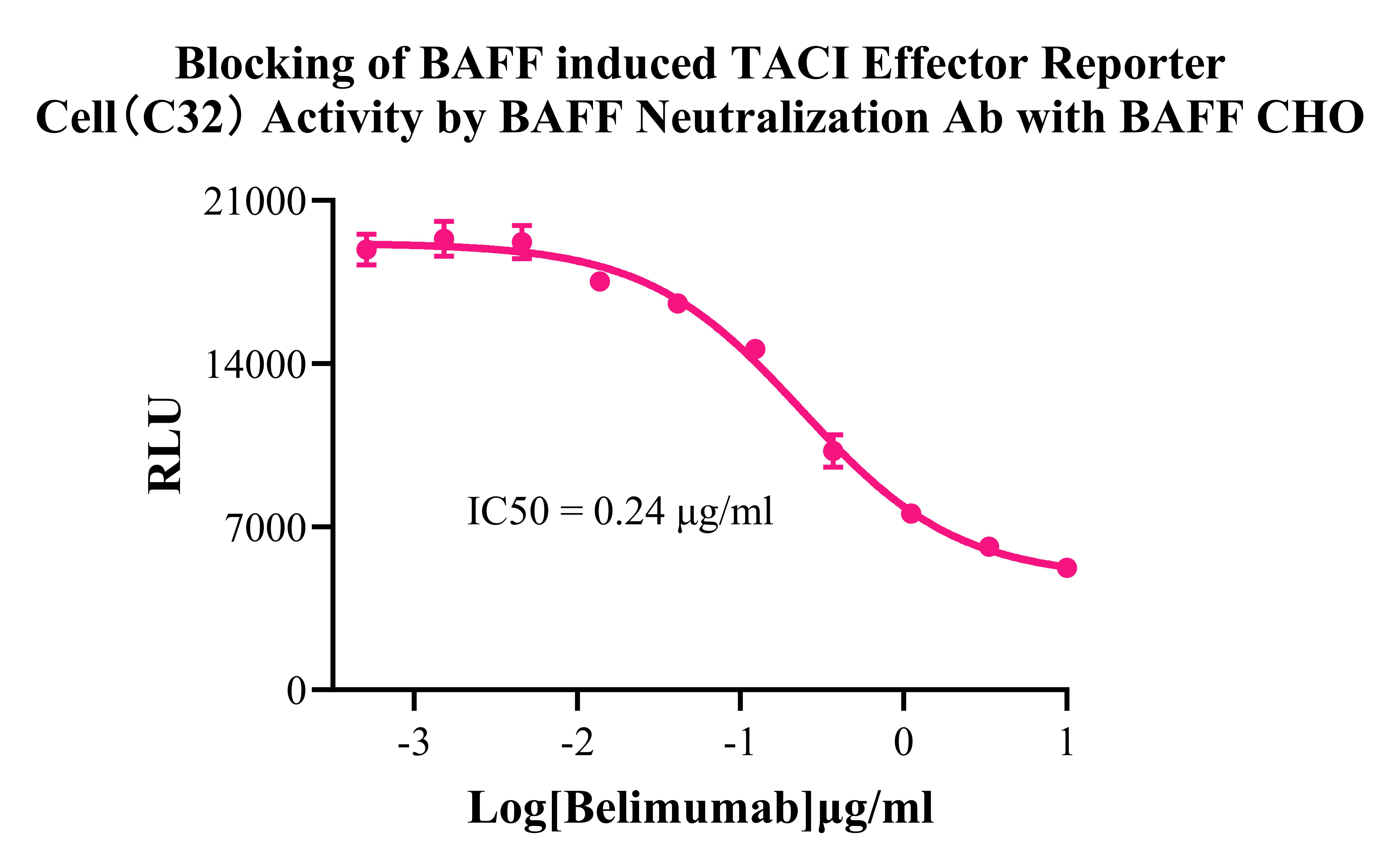 ![]() Figure 4. Blocking of BAFF induced TACI Effector Reporter Cell(C32) Activity by BAFF Neutralization Ab with BAFF CHO. |