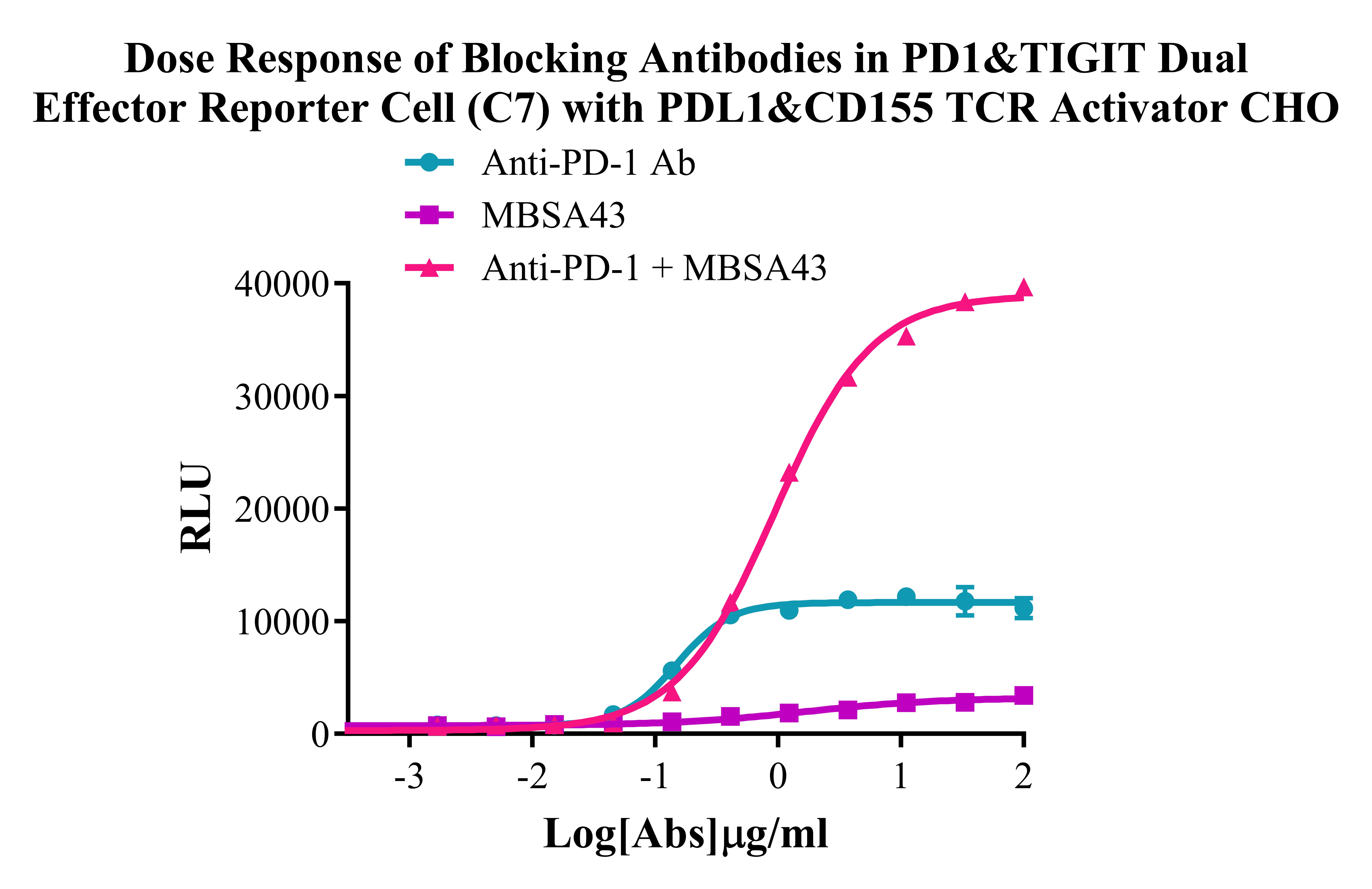 Figure 3. Dose Response of Blocking Antibodies in PD-1&TIGIT Dual Effector Reporter Cell (C7) With PD-L1&CD155/ TCR Activator - CHO.