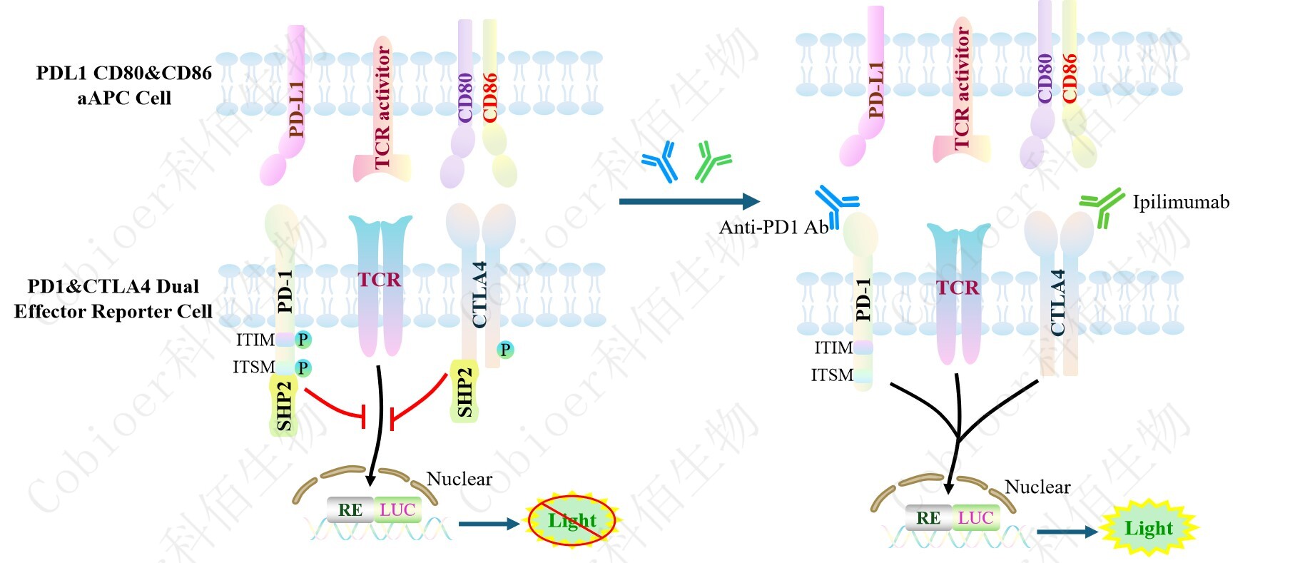 PD1&CTLA4 Dual Effector Reporter Cell 細胞模型原理圖