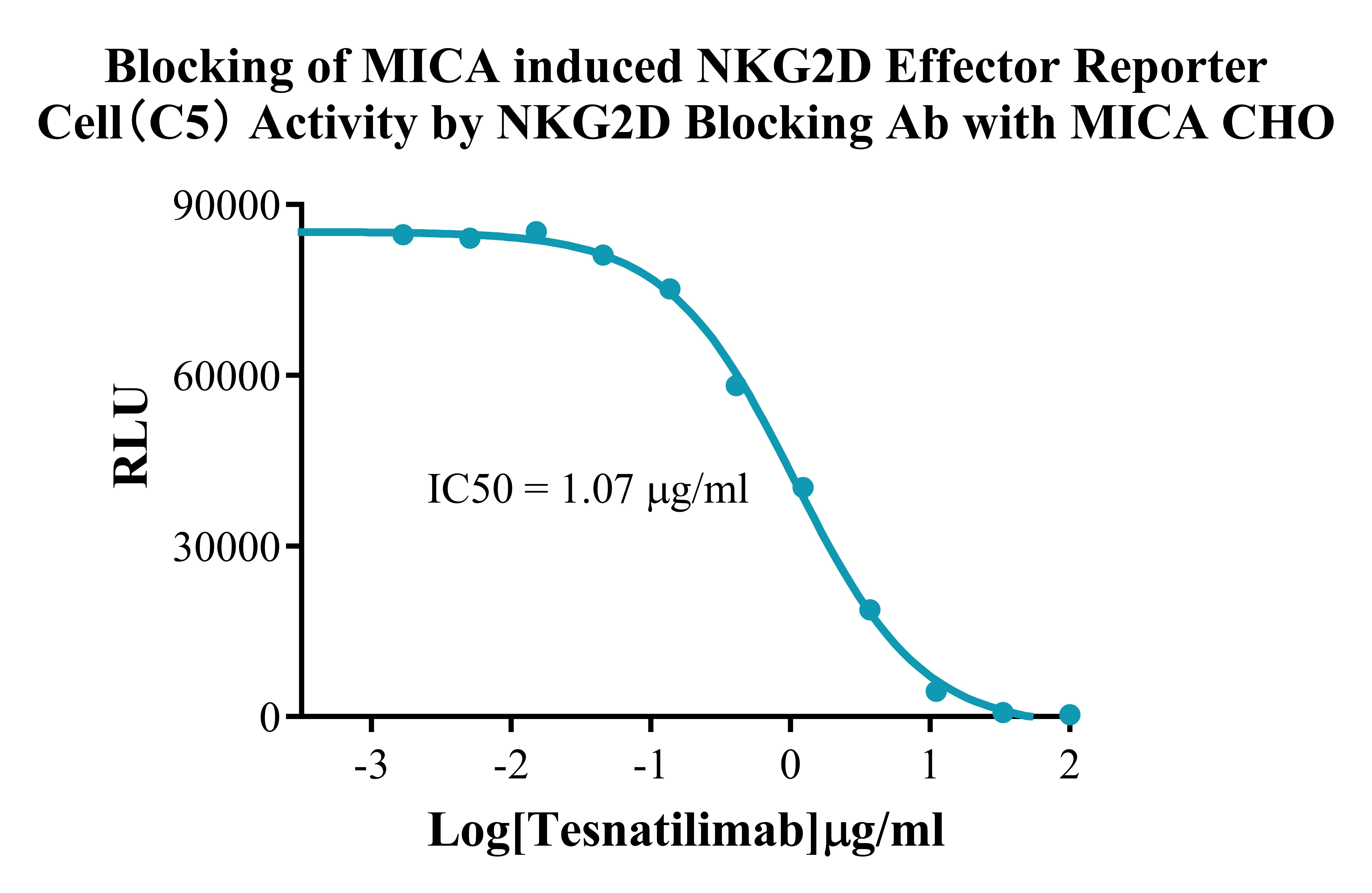 Figure 2. Blocking of MICA induced NKG2D Effector Reporter Cells (C5) Activity by NKG2D Blocking Ab with MICA CHO. |