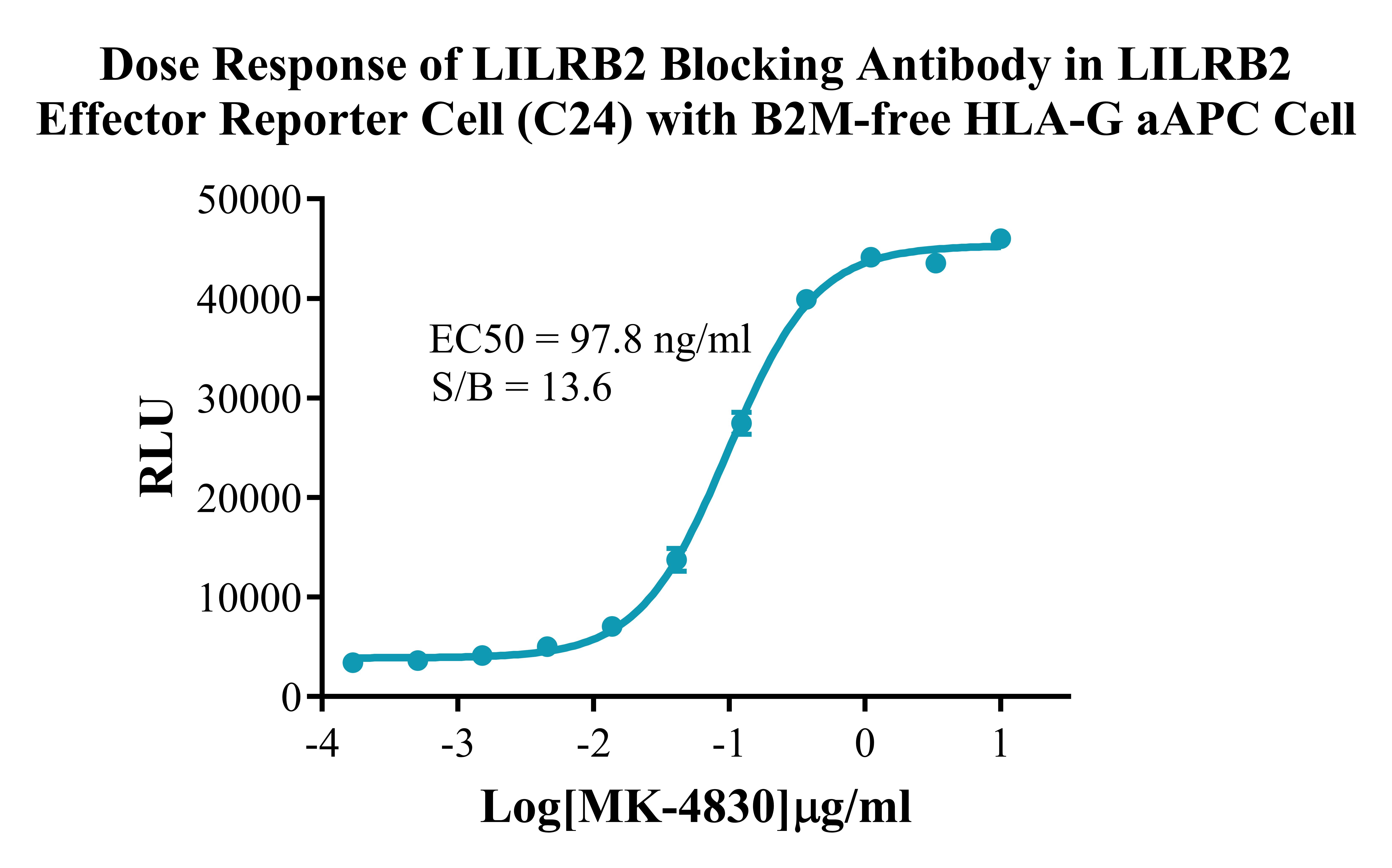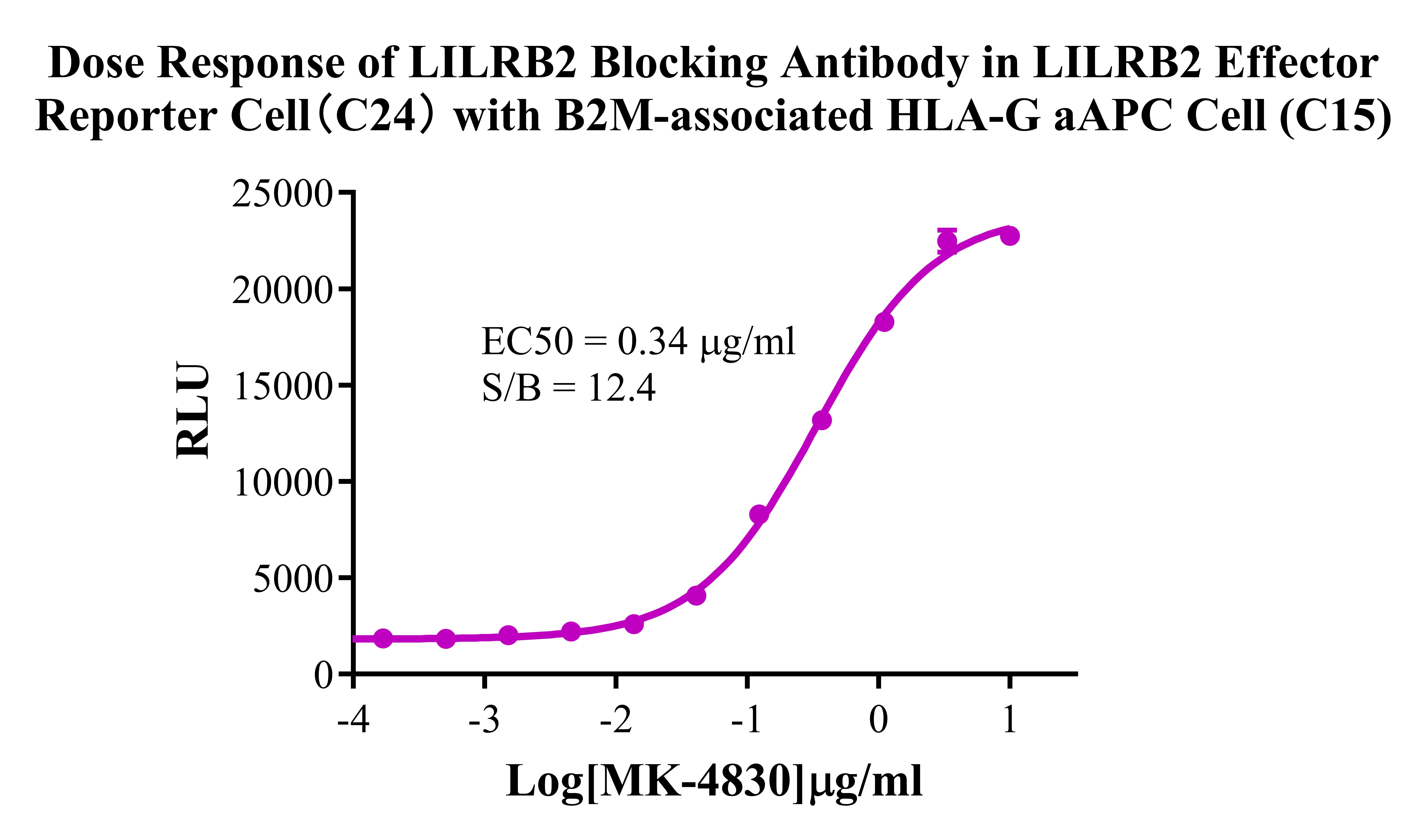 Figure 4. Dose Response of LILRB2 Blocking Antibody in LILRB2 Effector Reporter Cell (C24) with B2M-free HLA-G/aAPC Cell. |