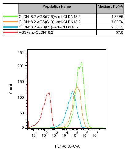 Claudin18.2 AGS 細胞,在 AGS 細胞的基礎上,穩定表達人 Claudin18.2。 |