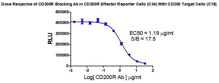 Figure 1. Dose Response of CD200R Blocking Ab in CD200R Effector Reporter Cells (C34) With CD200 Target cells (C18). |