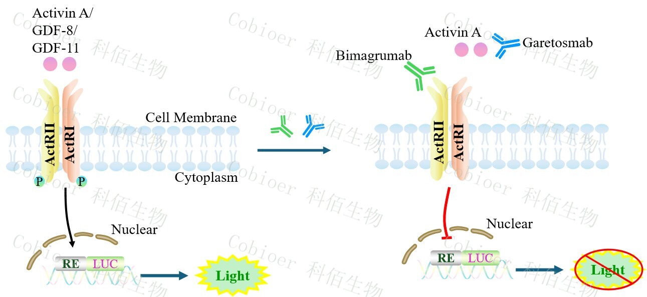 Activin A Effector Reporter Cell 報告基因藥靶模型很好的模擬了體內 Activin A 的信號轉導過(guò)程,原理見(jiàn)下圖所示。![]() Figure 1. Activin A Effector Reporter Cell 細胞模型原理圖 |
