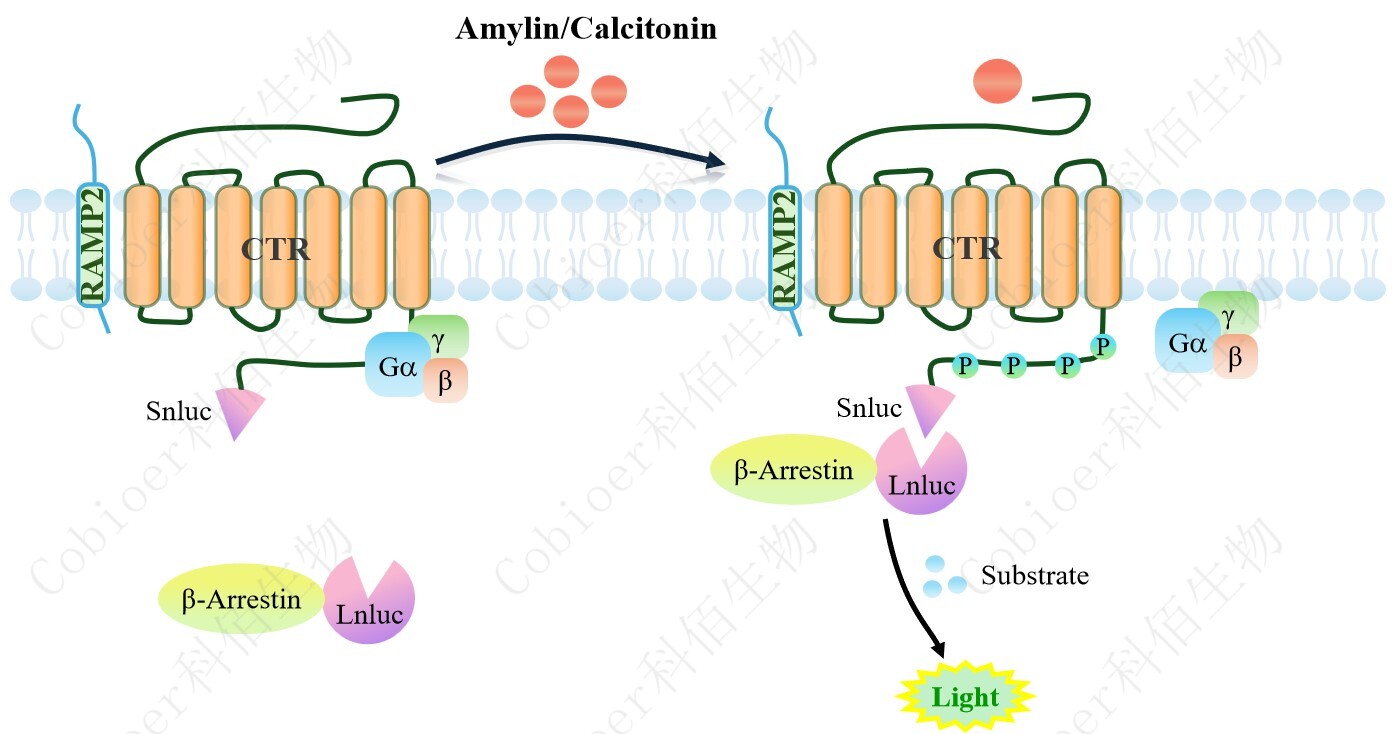 ![]() Figure 1. CTR&RAMP2 β-Arrestin CHO 細胞模型原理圖