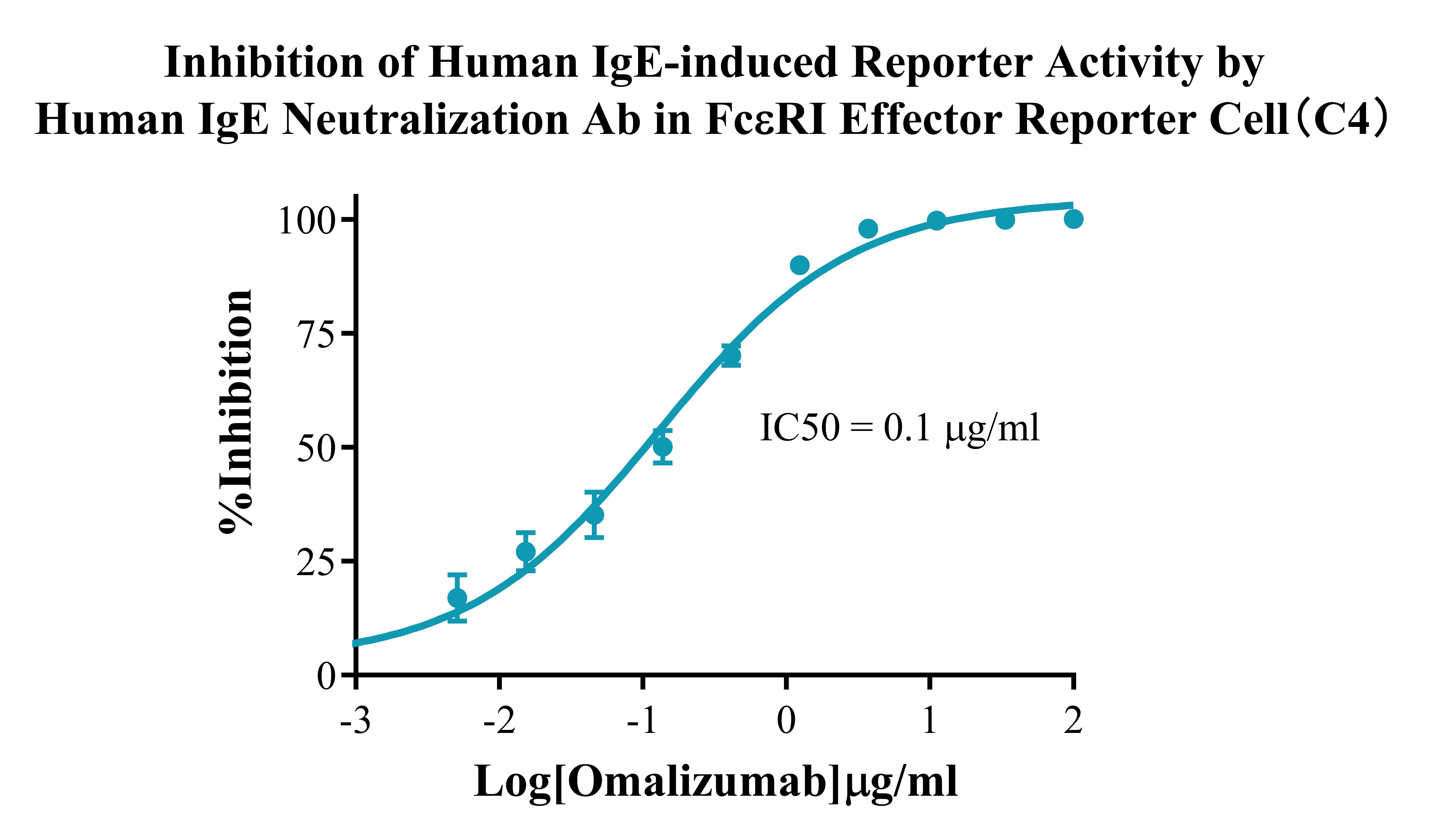 IV. Representative Data![]() Figure 2. Recombinant FcεRI Effector Reporter Cell stably expressing FcεRIA. ![]() Figure 3. Dose Response of Recombinant Human IgE in FcεRI Effector Reporter Cell(C4). ![]() Figure 4. Inhibition of Human IgE-induced Reporter Activity by Human IgE Neutralization Ab in FcεRI Effector Reporter Cell(C4). |