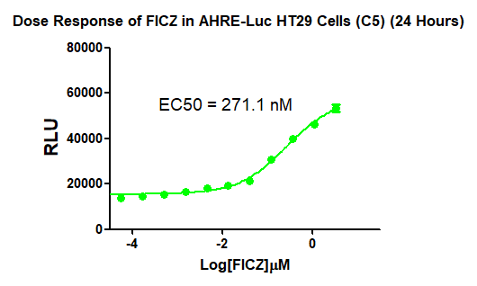 Figure 1. Dose Response of FICZ in AHRE-Luc HT29 Cells (C5)(6 Hours). |