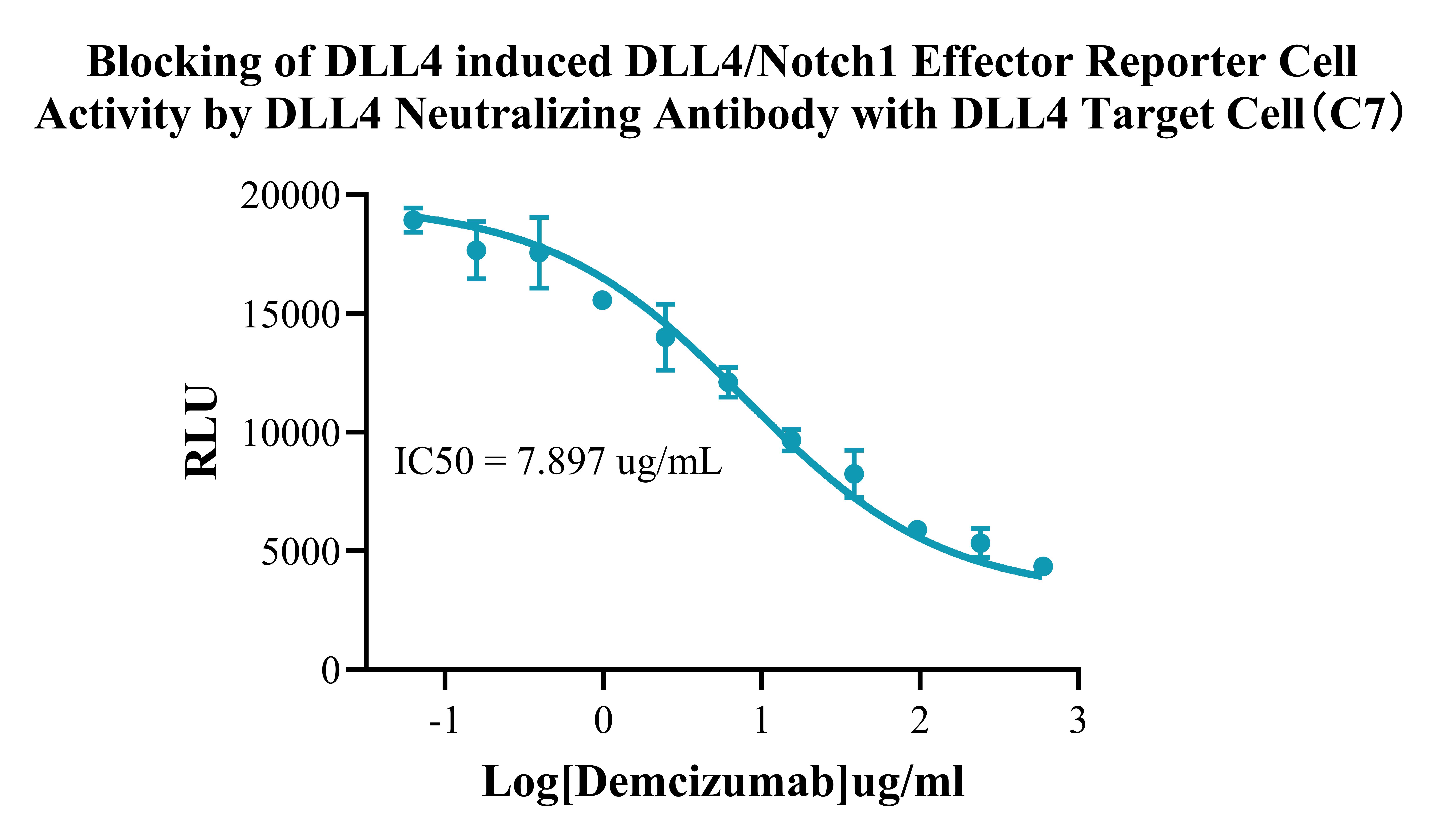 IV. Representative Data![]() Figure 2. Recombinant DLL4/Notch1 Effector Reporter Cell stably expressing Notch1. ![]() Figure 3. Blocking of DLL4 induced DLL4/Notch1 Effector Reporter Cell Activity by DLL4 Neutralizing Antibody with DLL4 Target Cell(C7). |