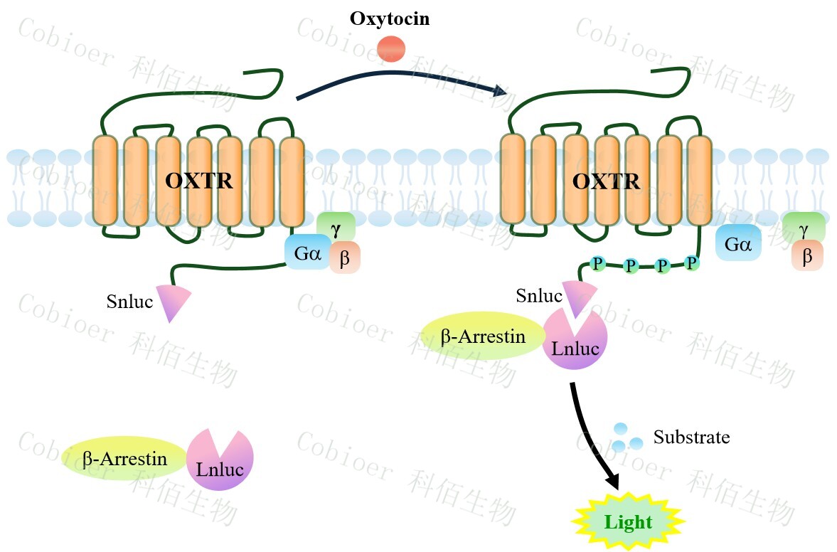 OXTR 在其配體的刺激下,會(huì )招募β-Arrestin 并與之結合,根據此原理,我們開(kāi)發(fā)的 OXTR β-Arrestin CHO 報告基因細胞上穩定表達了 OXTR 以及融合熒光素酶報告基因的 β-Arrestin。。![]() Figure 1. OXTR β-Arrestin CHO 細胞模型原理圖