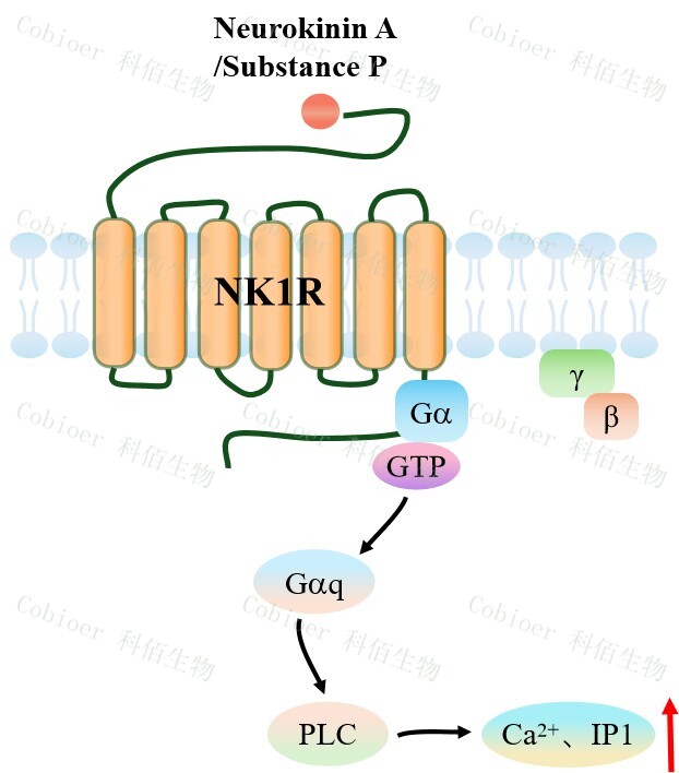 速激肽(Tachykinins )是分布在哺乳動(dòng)物中樞和周?chē)窠?jīng)系統中的一類(lèi)神經(jīng)肽。速激 肽物質(zhì) P(SP)、神經(jīng)激肽 A(NKA)和神經(jīng)激肽 B(NKB)共享一個(gè)保守的 C 端基序, 對速激肽受體(NK1R、NK2R 和 NK3R)的激活至關(guān)重要。NKA 優(yōu)先激活與 Gα偶聯(lián)的 NK2R,而 SP 和 NKB 分別優(yōu)先結合 NK1R 和 NK3R。三種速激肽都能夠在所有速激肽受 體類(lèi)型中表現為完全激動(dòng)劑。 NK1R(Neurokinin 1 Receptor),又稱(chēng) TACR1,是速激肽受體家族的核心成員,其內 源性配體為 P 物質(zhì)(Substance P)。 |