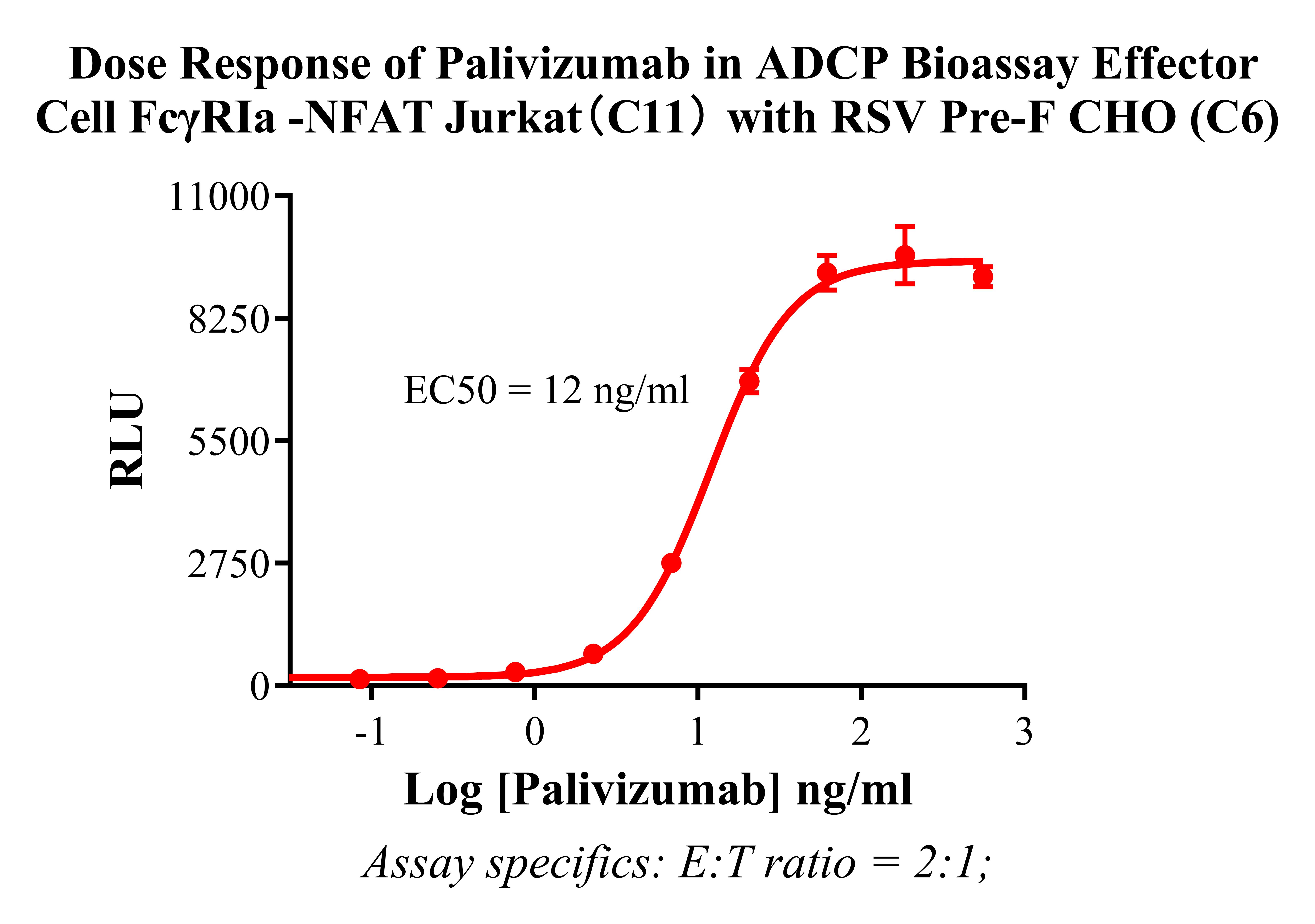 Figure 2. Dose Response of Palivizumab in ADCP Bioassay Effector Cell FcγRla -NFAT Jurkat(C11) with RSV Pre-F CHO (C6).
