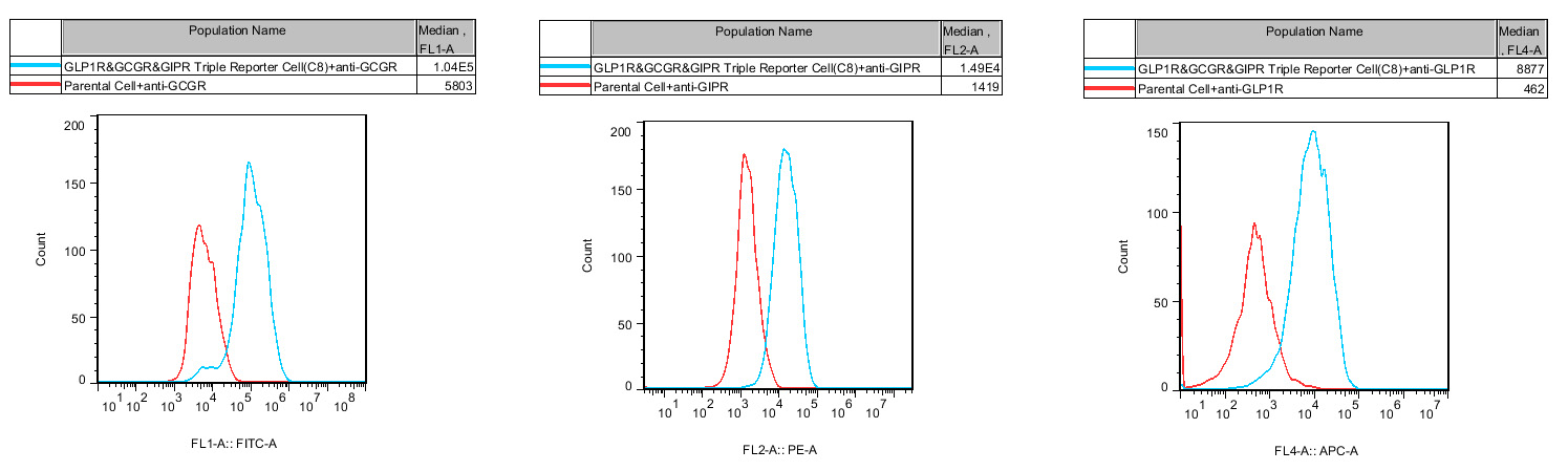 Figure 2.  Recombinant GLP1R&GCGR&GIPR Triple Reporter Cell stably expressing GLP1R&GCGR&GIPR.