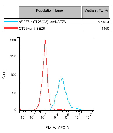IV. Representative Data![]() Figure 1. Recombinant hSEZ6/CT26 stably expressing hSEZ6. |
