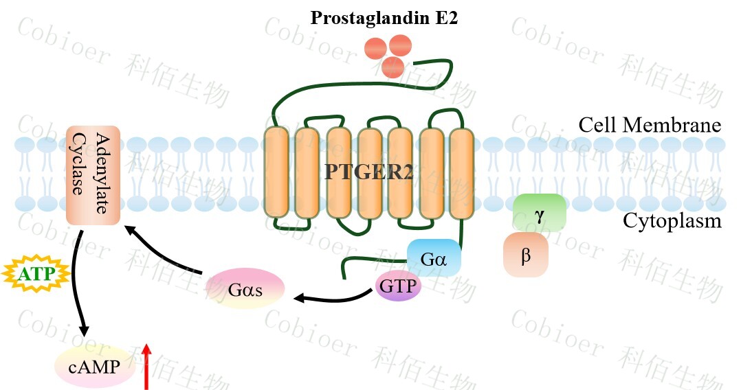 PTGER2(前列腺素 E2 受體 2 型)屬于前列腺素類(lèi)受體家族,廣泛分布于皮膚黏膜血 管、免疫細胞(如巨噬細胞、T 細胞)、子宮/氣道平滑肌及中樞神經(jīng)系統,其內源性配體 主要為前列腺素 E2(PGE2);該受體通過(guò)偶聯(lián) Gq 蛋白(升高胞內鈣離子誘導平滑肌收縮) 和 Gi 蛋白(抑制 cAMP 并激活 MAPK 通路)介導雙重信號,參與血管擴張、痛覺(jué)敏化、 免疫調控及平滑肌收縮等生理過(guò)程,其異常激活與銀屑病、哮喘、類(lèi)風(fēng)濕關(guān)節炎等炎癥性 疾病,以及 腫瘤免疫逃逸(如結直腸癌)和神經(jīng)炎癥(如阿爾茨海默?。?密切相關(guān),成為 抗炎與腫瘤治療的重要靶點(diǎn)。 |