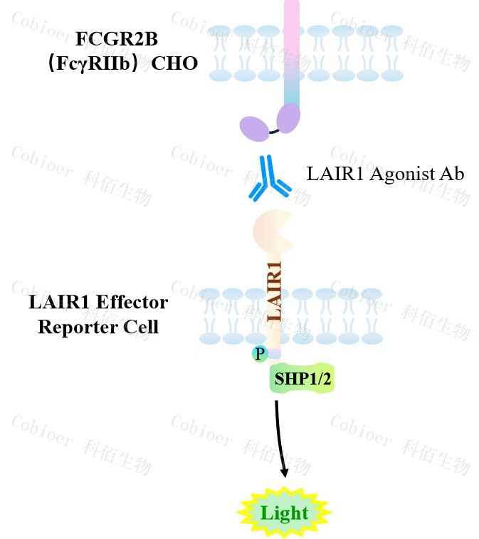 LAIR1 Effector Reporter Cell 報告基因藥靶模型很好的模擬了體內 LAIR1 的信號轉導過(guò)程,原理見(jiàn)下圖所示。![]() Figure 1.LAIR1 Effector Reporter Cell 細胞模型原理圖 |
