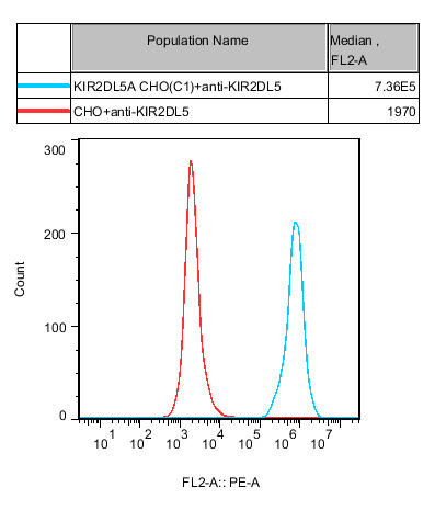 | KIR2DL5A CHO 細 胞, 在 CHO-K1 細胞的基礎上,穩定表達人 KIR2DL5A。 | |