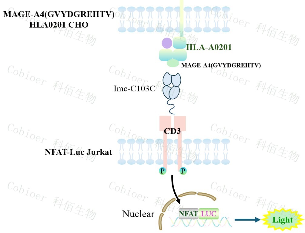 HLA-A*0201-MAGEA4 復合物是人類(lèi)白細胞抗原(HLA)Ⅰ類(lèi)分子與 MAGEA4 抗原肽的復合體,屬于主要組織相容性復合體(MHC)Ⅰ類(lèi)家族成員。該復合物常用于 T 細胞 受體(TCR)療法,通過(guò)激活 T 細胞以識別并殺傷腫瘤細胞,原理見(jiàn)下圖所示。![]() Figure 1. MAGE-A4(GVYDGREHTV) HLA0201 CHO 細胞模型圖 |