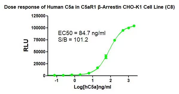 Figure 1.Dose response of Human C5a in C5aR1 β-Arrestin CHO-K1 Cell Line (C8). |