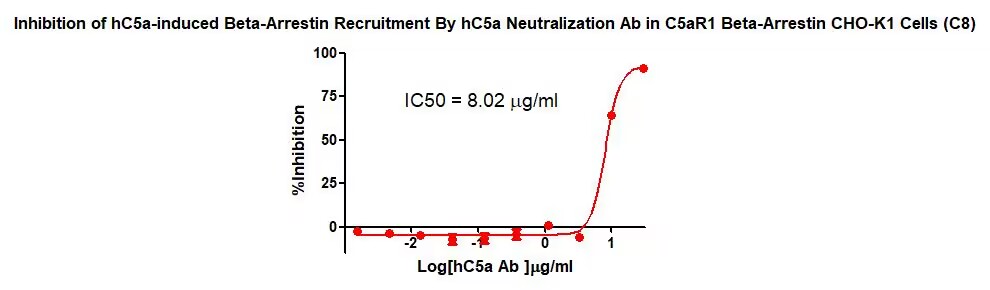 Figure 2. Inhibition of hC5a-induced Beta-Arrestin Recruitment By hC5a Neutralization Ab in C5aR1 Beta-Arrestin CHO-K1Cells(C8). |
