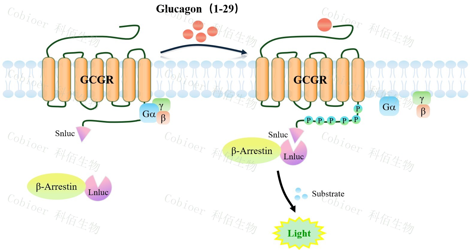 GCGR β-Arrestin CHO 細胞模型原理圖