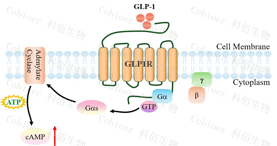 | GLP-1R 與其他四種胰高血糖素受體(GCGR、GLP-2R、GIPR 和 GHRHR)一起屬于 促胰液素 (B1 類(lèi)) GPCR 家族,其內源性配體是肽激素。 B1 類(lèi) GPCRs 在 N 端具有一個(gè)較 大的、結構保守的胞外結構域(ECD),由 120-160 個(gè)殘基組成,形成三層 α-β-β-α 折疊, 并由三個(gè)層間二硫鍵穩定。 GLP-1R 的內源性配體是 GLP-1 (7-36)和 GLP-1 (7-37),它們是胰高血糖素原翻 譯后加工的產(chǎn)物。GLP-1R 主要通過(guò) Gαs/cAMP 通路發(fā)出信號,直接導致葡萄糖誘導的胰 島素顆粒分泌;但有證據表明 GLP-1R 可與 Gαq 和其他 G 蛋白偶聯(lián);GLP -1R 激活后,C 末端發(fā)生磷酸化,進(jìn)一步募集β-抑制蛋白,導致受體內化和脫敏。 |