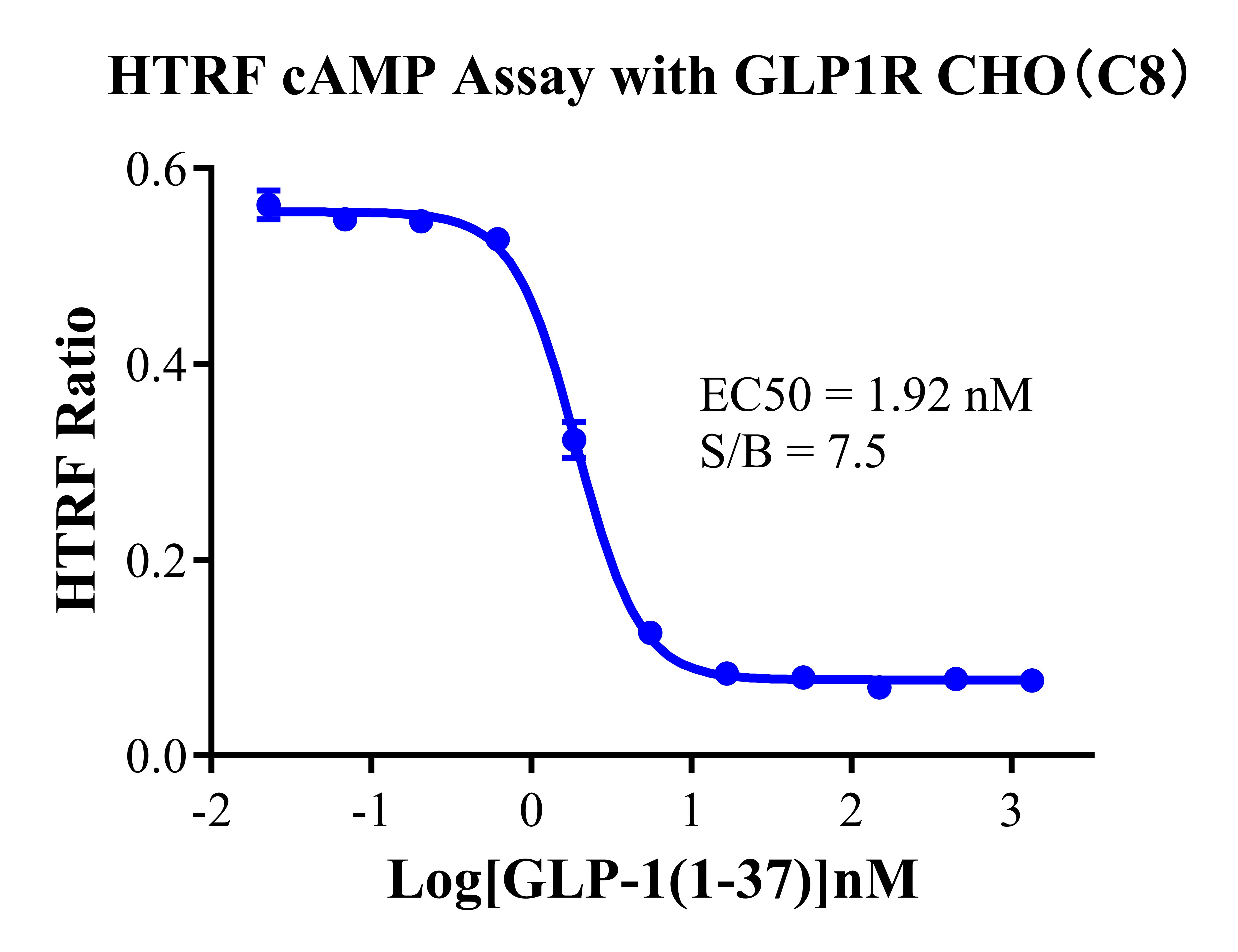 Figure 3. HTRF cAMP Assay with GLP1R CHO(C8). |