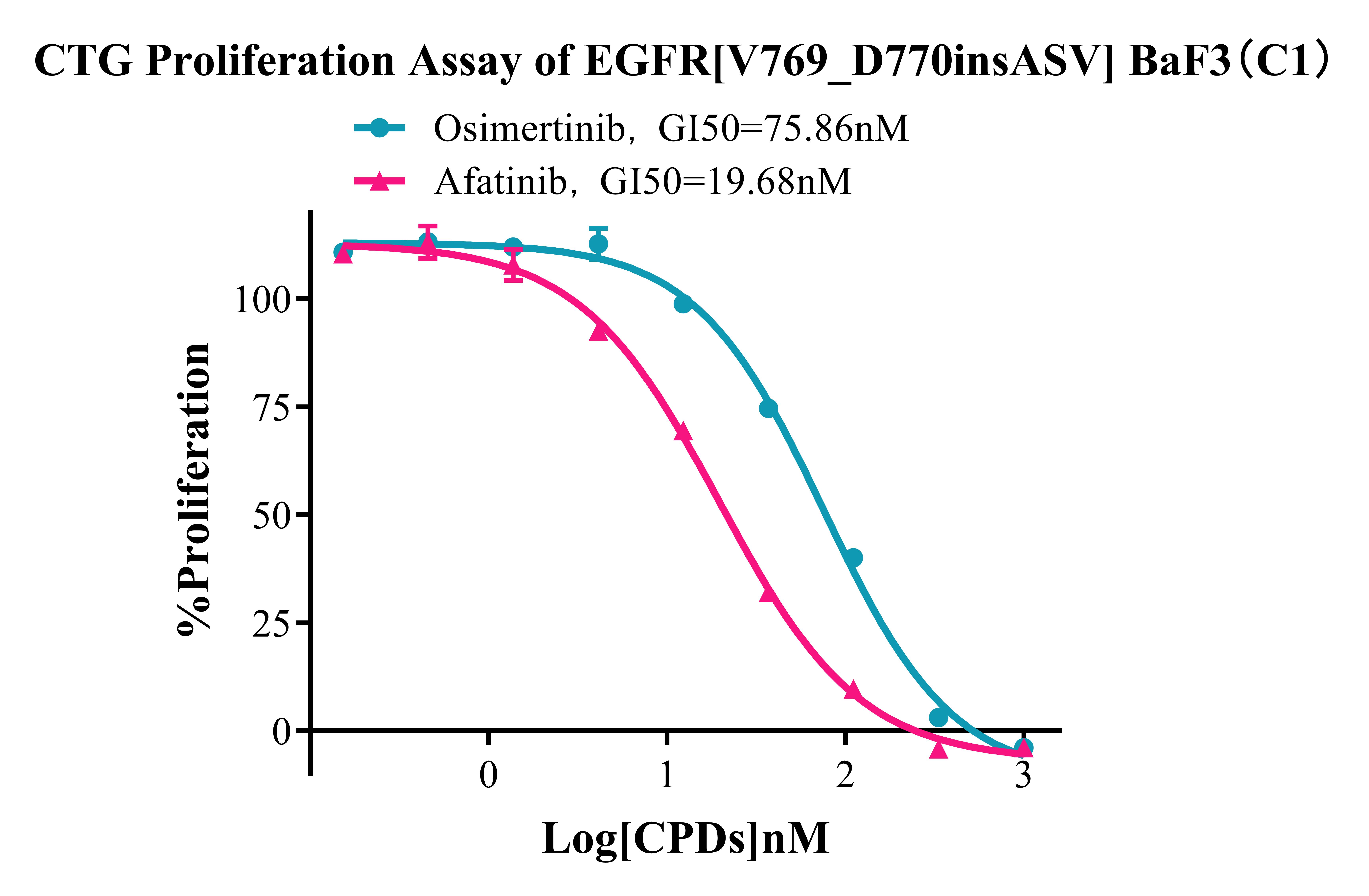 Figure 4 . CTG Proliferation Assay of EGFR [V769_D770insASV] BaF3(C1).