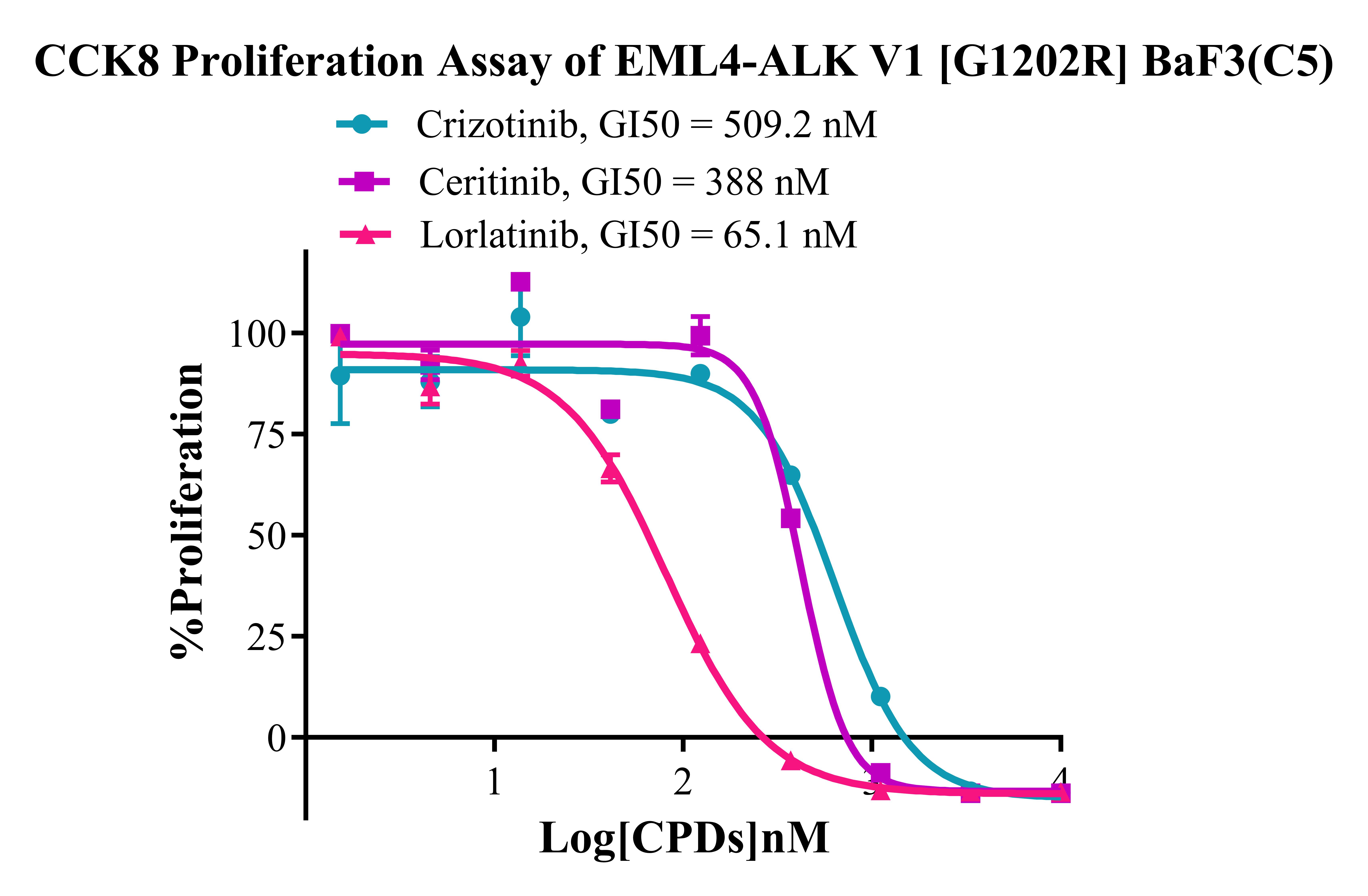 Figure 5. CCK8 Proliferation Assay of EML4-ALK v1 [G1202R] BaF3(C5). |