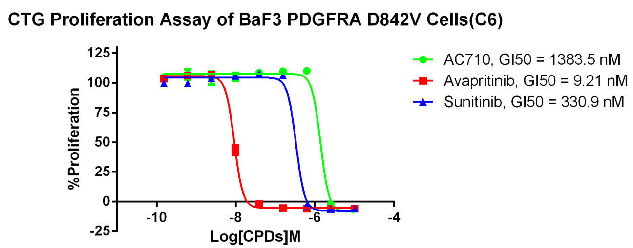 Figure 3. CTG Proliferation Assay of BaF3 PDGFRA D842V Cells(C6).