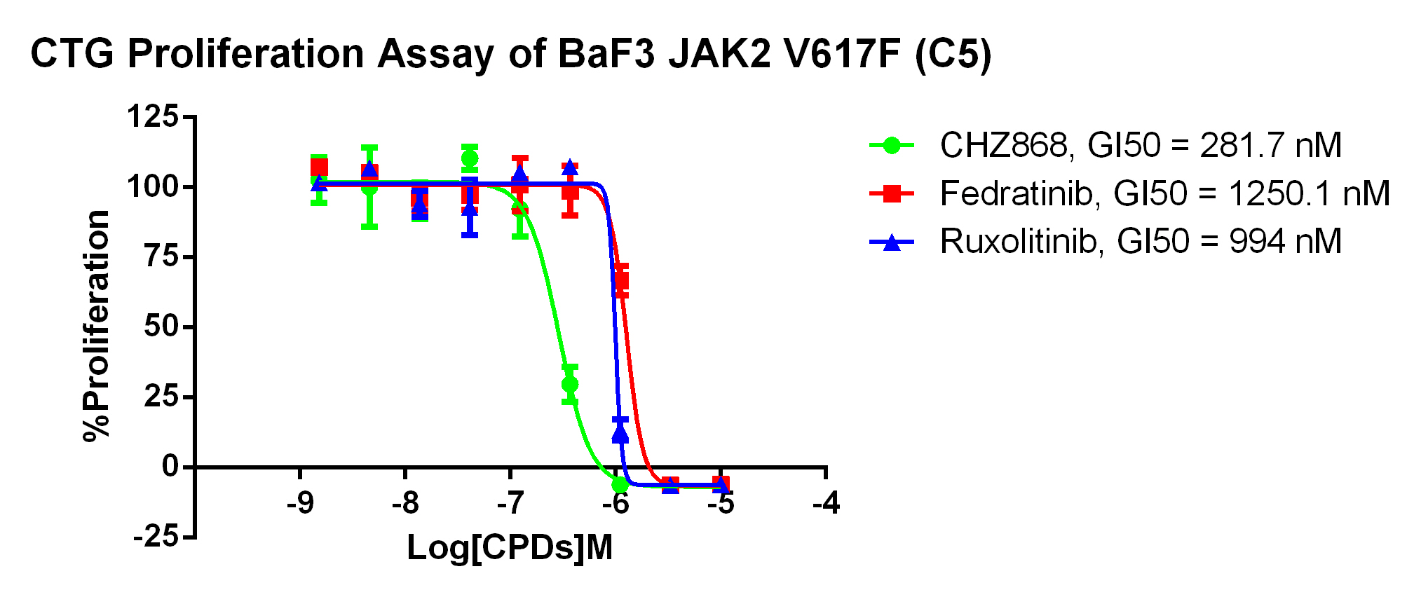 Figure 2. CTG Proliferation Assay of BaF3 JAK2 V617F (C5). |