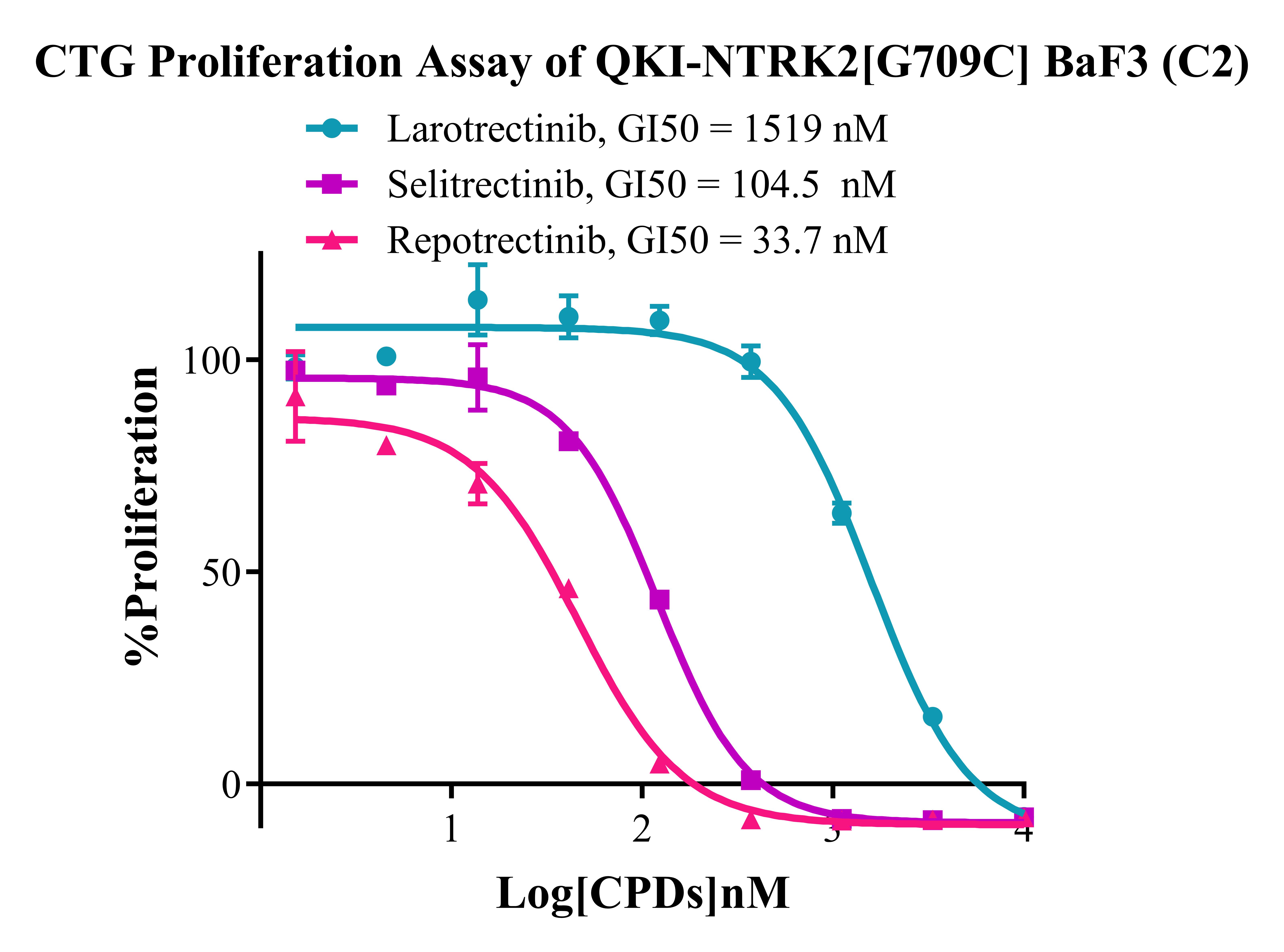 Figure 2. CTG Proliferation Assay of  QKI-NTRK2 [G709C] BaF3(C2).