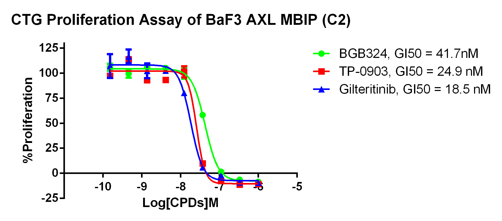 Figure 2. CTG Proliferation Assay of BaF3 AXL MBIP (C2). |