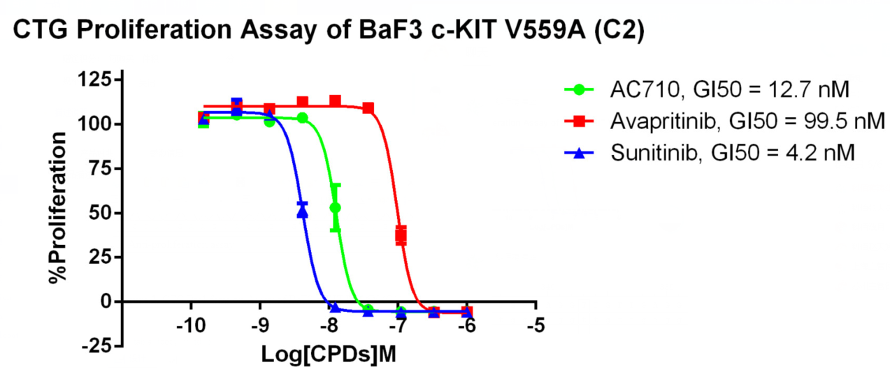 Figure 2. CTG Proliferation Assay of BaF3 c-KIT V559A (C2).