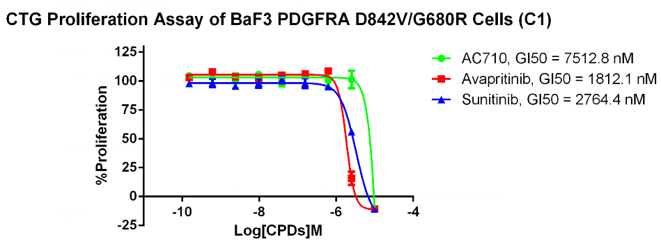 Figure 3. CTG Proliferation Assay of BaF3 PDGFRA D842V/G680R Cells (C1).