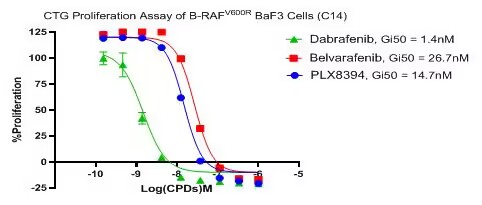 Figure 3. CTG Proliferation Assay of B-RAF V600R BaF3 Cells (C14).