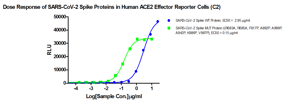 Figure 1. Dose Response of SARS-CoV-2 Spike Proteins in Human ACE2 Effector Reporter Cells (C2).