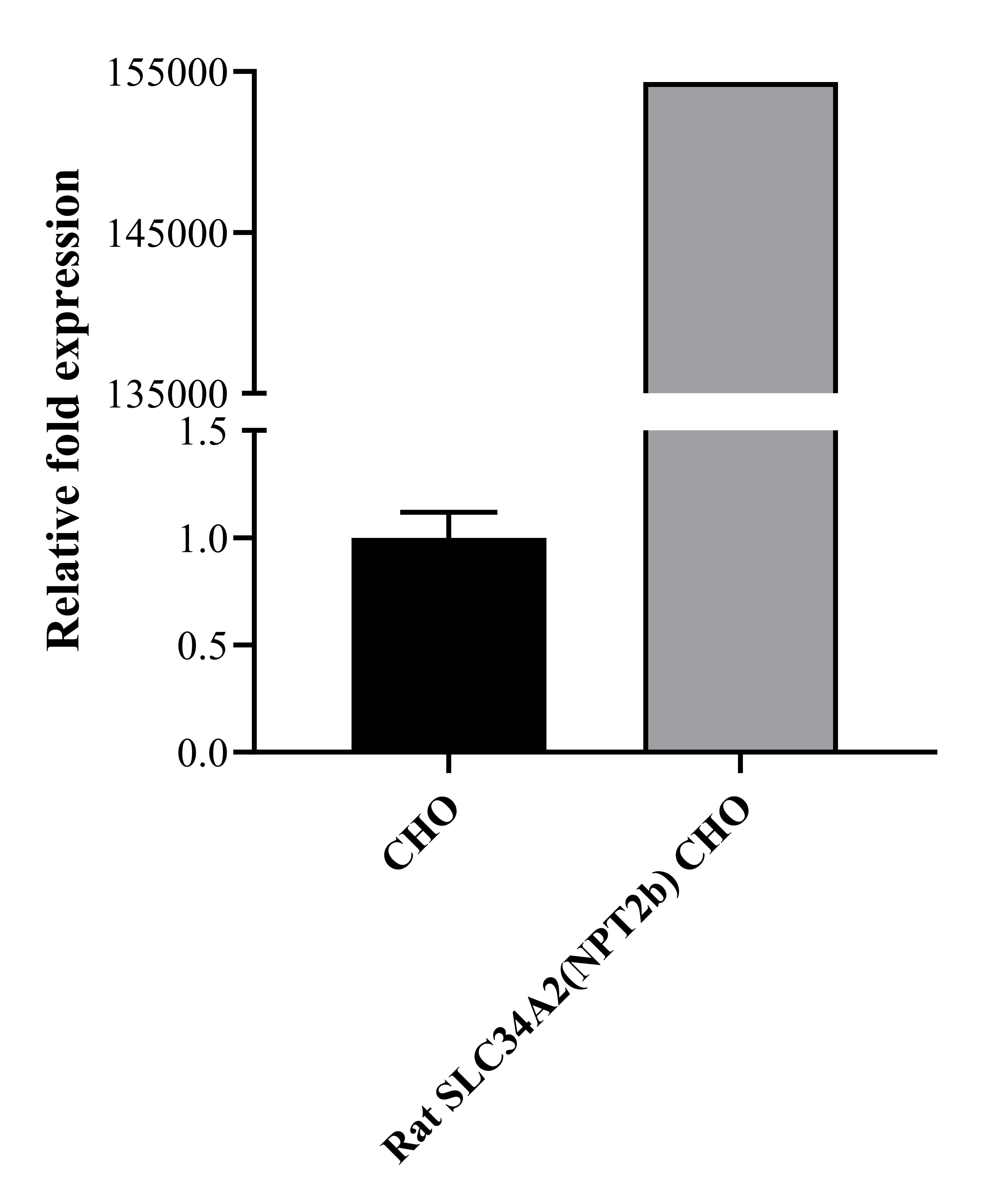 Figure 1.Rat SLC34A2(NPT2b) CHO 細胞 qPCR 驗證 SLC34A2(NPT2b) 的表達。