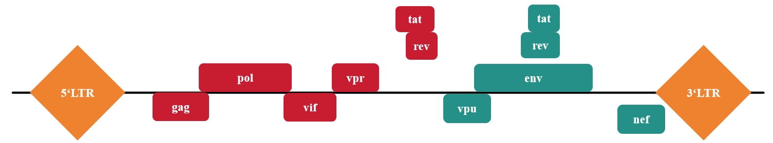2. 調控基因包含:tat、rev