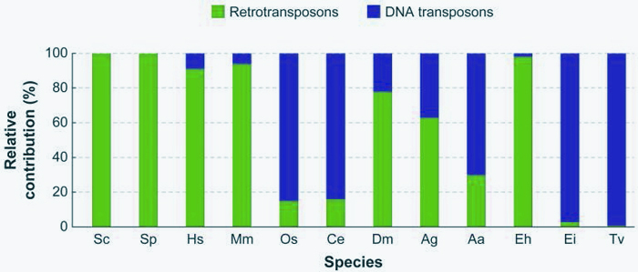 轉座因子(Transposable element,簡(jiǎn)稱(chēng)TE),又稱(chēng)“跳躍基因”,是指從基因組的一個(gè)位置移動(dòng)到另一個(gè)位置的DNA序列。這類(lèi)因子最早由遺傳學(xué)家芭芭拉·麥克林托克于50多年前發(fā)現。起初,生物學(xué)家對麥克林托克的發(fā)現持懷疑態(tài)度。然而,在接下來(lái)的幾十年里,人們逐漸發(fā)現,TE不僅會(huì )“跳躍”,而且幾乎存在于所有生物體(包括原核生物和真核生物)中,而且通常數量巨大。例如,TE約占人類(lèi)基因組的50%,占玉米基因組的90%。