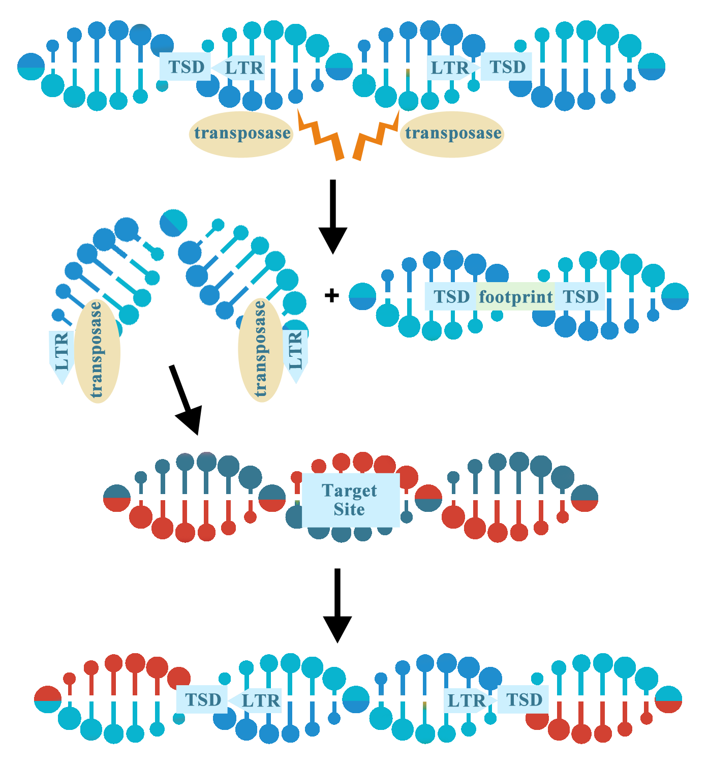 雖然轉座子有很多不同的類(lèi)型,但DNA轉座子在實(shí)驗室中用于基因組操作最為常見(jiàn)。在實(shí)驗室中使用轉座子時(shí),轉座酶基因以反式形式提供,以便將目標基因插入轉座子的長(cháng)末端重復序列(LTR)之間,類(lèi)似于病毒載體的包裝過(guò)程。