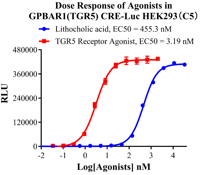 為了助力TGR5藥物的研發(fā),科佰生物及時(shí)開(kāi)發(fā)了基于CREB/cAMP信號通路的TGR5細胞模型,用于候選藥物早期機理研究。