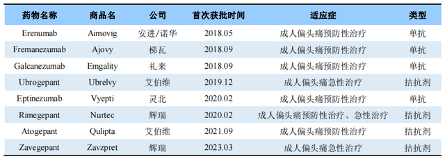 2018年以來(lái),已有多款靶向降鈣素基因相關(guān)肽(CGRP)或其受體的藥物獲批,用于偏頭痛的治療或預防,這標志著(zhù)偏頭痛治療新時(shí)代的到來(lái)。與傳統療法相比,CGRP相關(guān)療法具有顯著(zhù)的改進(jìn),它們特異性地作用于三叉神經(jīng)疼痛系統,且很少或沒(méi)有不良反應。Ubrogepant等CGRP受體拮抗劑可以有效緩解偏頭痛的急性發(fā)作,而Eptinezumab、Fremanezumab和Erenumab等靶向CGRP或CALCRL的單克隆抗體可以有效預防偏頭痛發(fā)作。目前,全球已批準8款CGRP/CGRPR類(lèi)偏頭痛藥物上市,國內僅君實(shí)生物和博安生物有所布局。其中君實(shí)生物的CGRP單抗JS010于2022年12月30日申報臨床。隨著(zhù)患者需求不斷提高及創(chuàng )新藥物相繼面世的推動(dòng)下,預計2024年偏頭痛領(lǐng)域市場(chǎng)規??沙?10億美元,未來(lái)CGRP類(lèi)藥物市場(chǎng)空間潛力巨大。