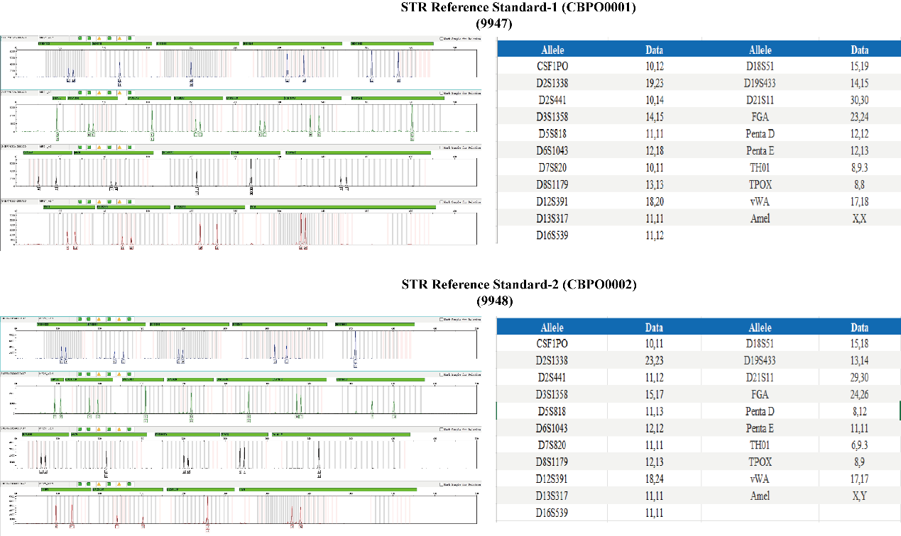 1. 常染色體系列,分為男性(9948)和女性(9947)兩個(gè)標準品:包含常用的20個(gè)STR位點(diǎn)(含13個(gè)CODIS 位點(diǎn)) 和一個(gè)性別位點(diǎn)Amelogenin。